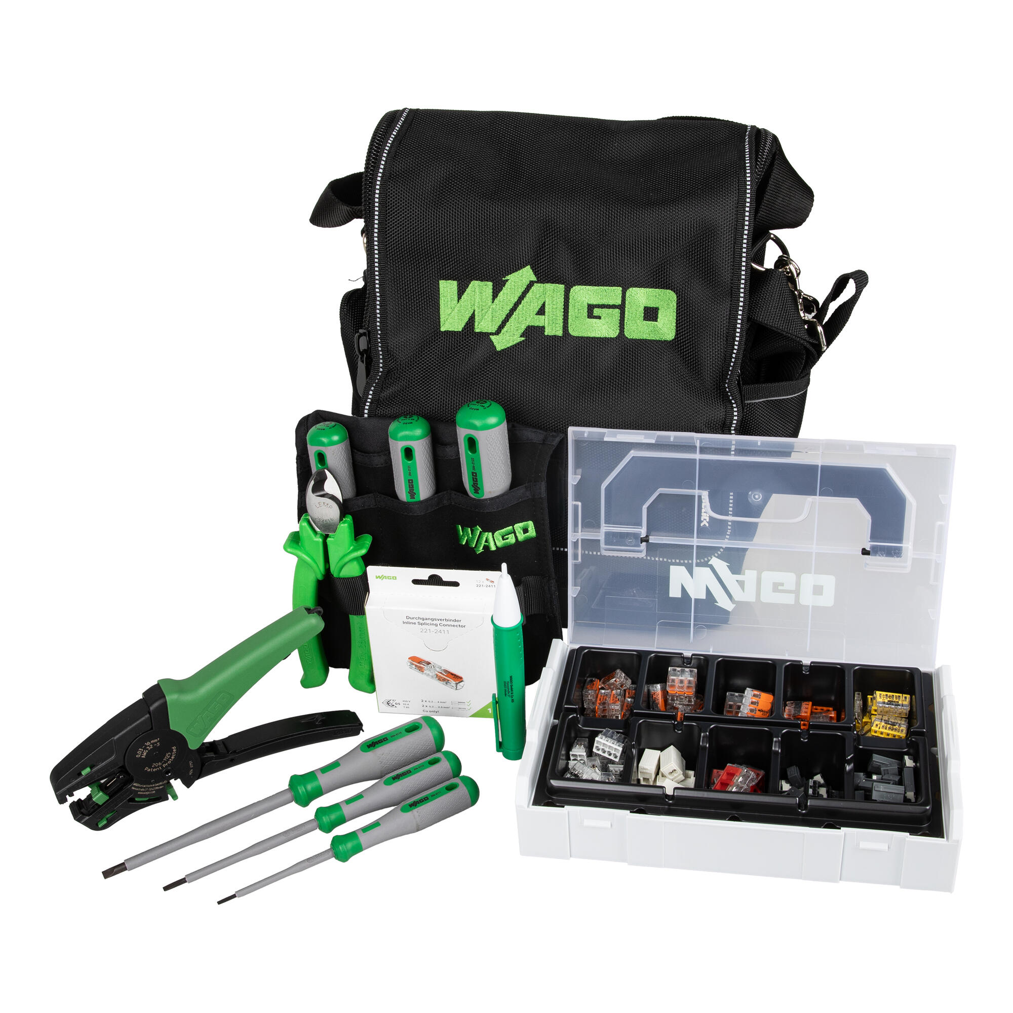 Чи йдеться про будівельні інсталяції, машинобудування та виробництво обладнання, чи про роботи з технічного обслуговування й ремонту – практична сумка з інструментами WAGO забезпечує максимальну мобільність і гнучкість, адже всі необхідні інструменти завжди під рукою. Вона легко з’єднується з L‑BOXX Micro або Mini, забезпечуючи зручний доступ до з’єднувальних клем та наконечників для підключення провідників.