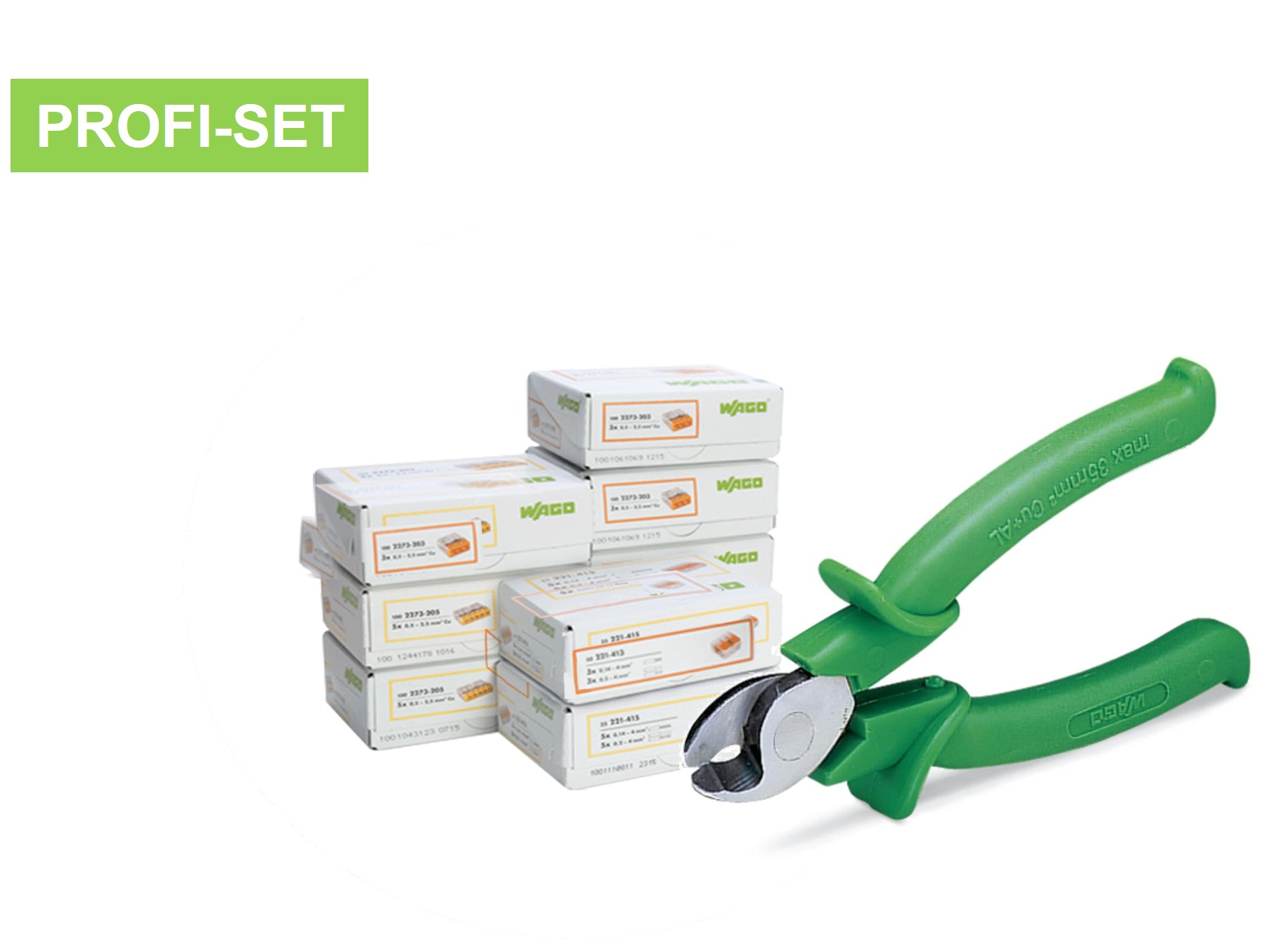 - Пропозиція PROFI-SET полягає на можливості придбати набір з’єднувальних клем WAGO разом з інструментом для різання кабелів в промоційній ціні.